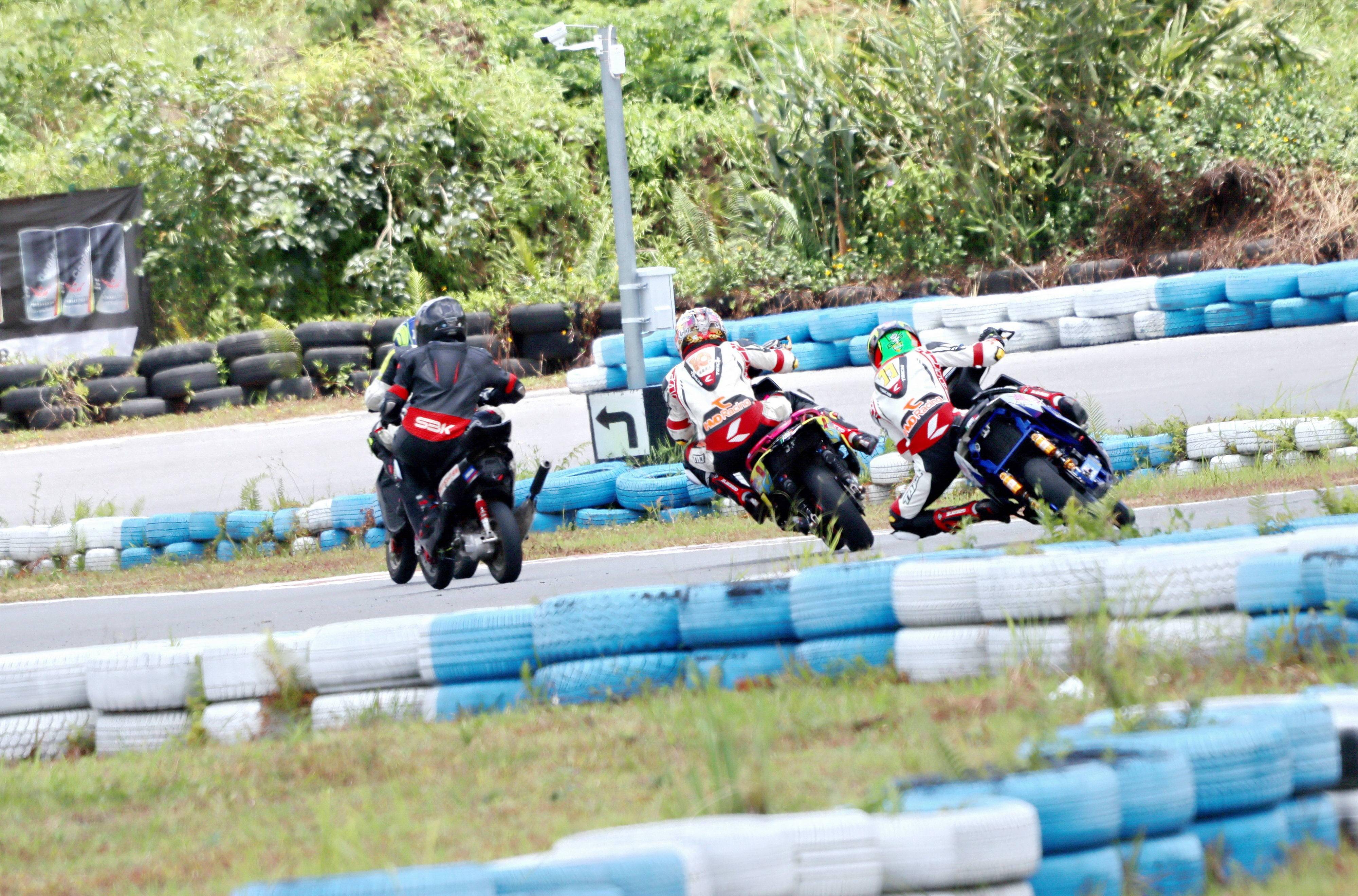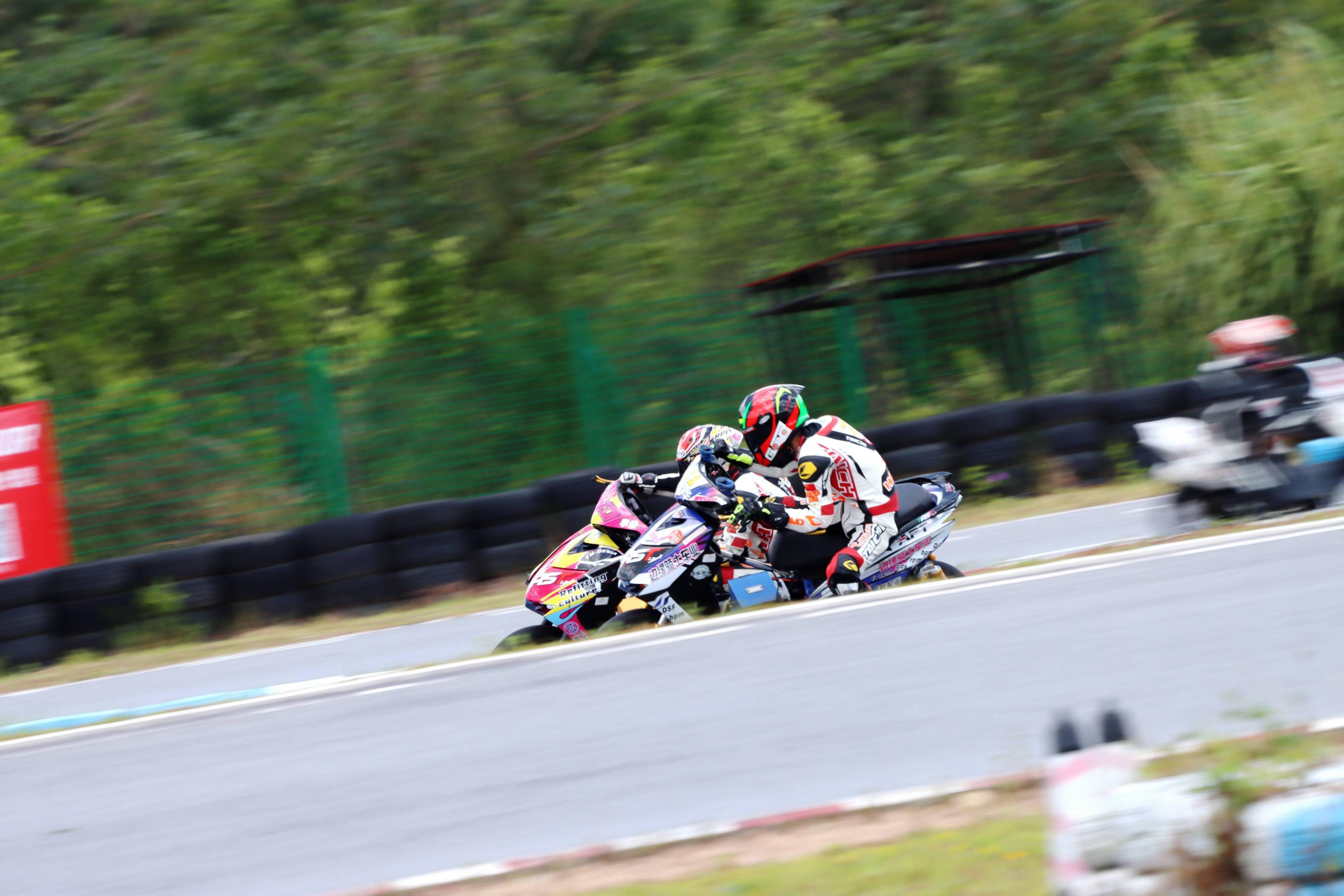 兩節(jié)的比賽,前面的第一競爭集團(tuán)、是梁宇華和李俊的電車公開組冠軍之爭,隨后則是(兩沖程)踏板公開組幾臺賽車在各顯身手,上演著寸土不讓的追逐。