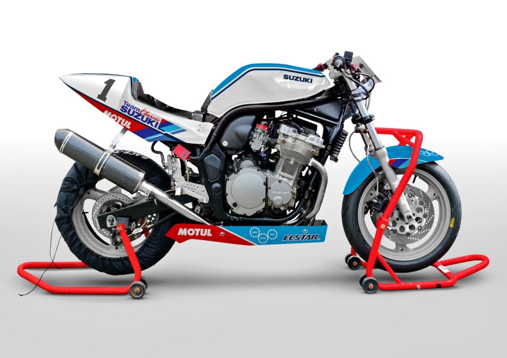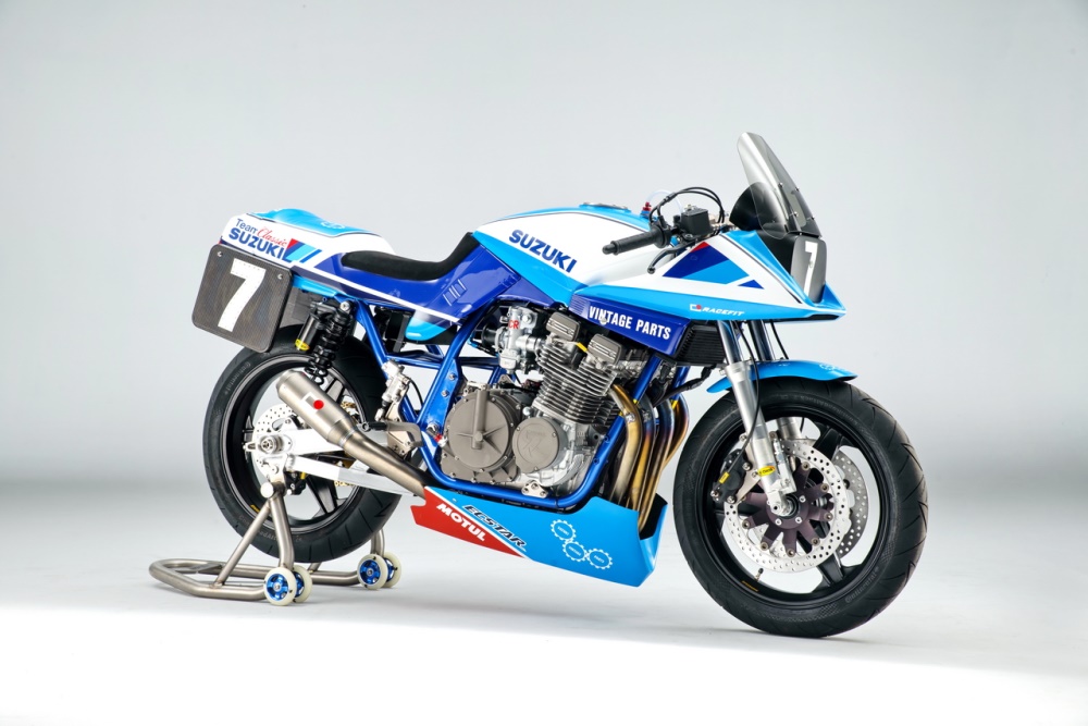 該車搭載一副來(lái)自 GSX1100SD(1983' GSX1100S Katana)的風(fēng)/油冷發(fā)動(dòng)機(jī),排氣量擴(kuò)大至 1,170 cc(標(biāo)準(zhǔn)狀態(tài)下的排氣量是 1,075 cc、最大馬力輸出 111 匹)。車隊(duì)使用這臺(tái) Katana 賽車、贏得了后來(lái)在德國(guó)奧歇斯勒本(Oschersleben)舉行的歐洲經(jīng)典耐力四小時(shí)錦標(biāo)賽(European Classic Endurance Championship)的冠軍。
