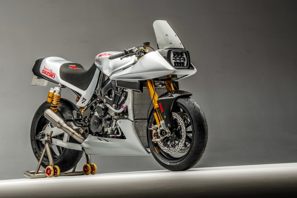 下面的圖片,2017 年的時(shí)候,“ Suzuki 經(jīng)典車隊(duì) ” 制作了這臺(tái)針對(duì)英國(guó)和歐洲 “ 傳奇耐力賽 ”(Endurance Legends,使用老式車拼湊出來(lái)的賽車之賽事)所使用的 Katana 風(fēng)格賽車。