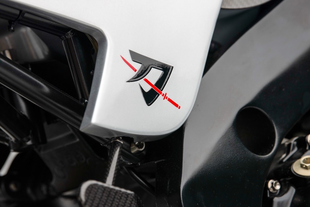 車體方面,外形上、采用了與老款的 Katana “ 刀 ” 相近的風(fēng)格,灰色的車身主色調(diào)、配合標(biāo)志的紅色貼花和字體,盡可能地保留了老款 Katana “ 刀 ” 的傳統(tǒng)元素。