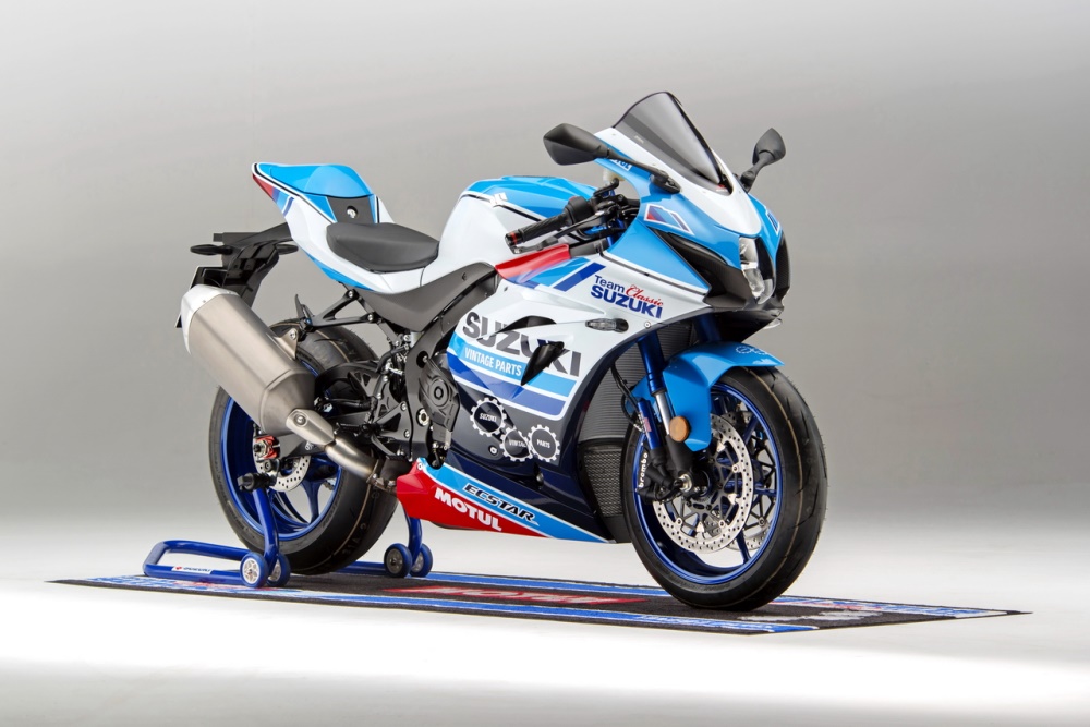 下面的圖片,“ Suzuki 經(jīng)典車隊(duì) ” 在 2018 年推出的,采用了老款 GSX-R750 外觀圖案/貼花風(fēng)格,并標(biāo)配了兩端牛角護(hù)桿、后座外蓋、發(fā)動(dòng)機(jī)兩側(cè)護(hù)蓋等組件的 GSX-R1000R “ Suzuki 經(jīng)典車隊(duì) ” 復(fù)制版。