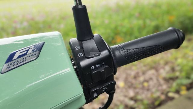 左手把按鍵為傳統(tǒng)布局,功能簡單明了,只有遠(yuǎn)/近光切換、喇叭、轉(zhuǎn)向燈開關(guān),上手即可盲操,按鍵質(zhì)感中規(guī)中矩,符合這個(gè)級(jí)別應(yīng)有的表現(xiàn)。