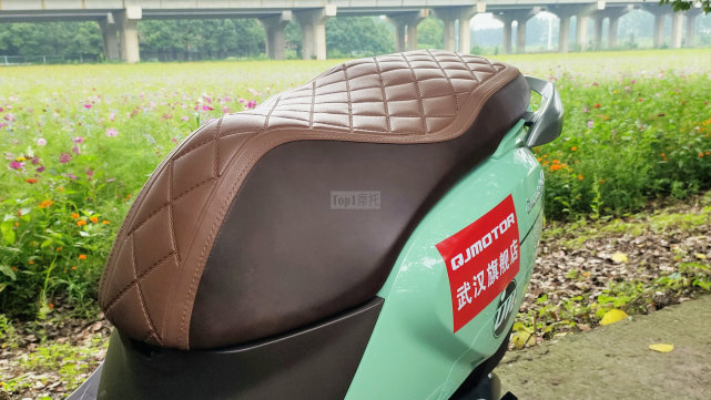 比起菲諾125的純色坐墊,壹米150多了壓花的設(shè)計(jì),整個(gè)坐墊以復(fù)古咖啡色的皮革打底,棕色壓花的皮革為面,視覺方面效果更勝一籌。