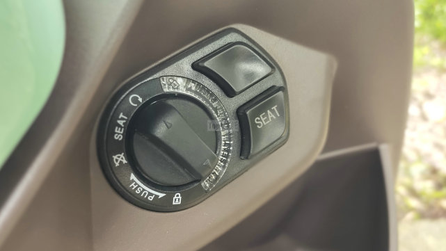 QJMOTOR的兩款踏板都標(biāo)配了無鑰匙啟動(dòng)功能,解鎖之后操作旋鈕還有短暫的LED燈光提醒功能,開啟坐墊空間也有單獨(dú)的按鍵。