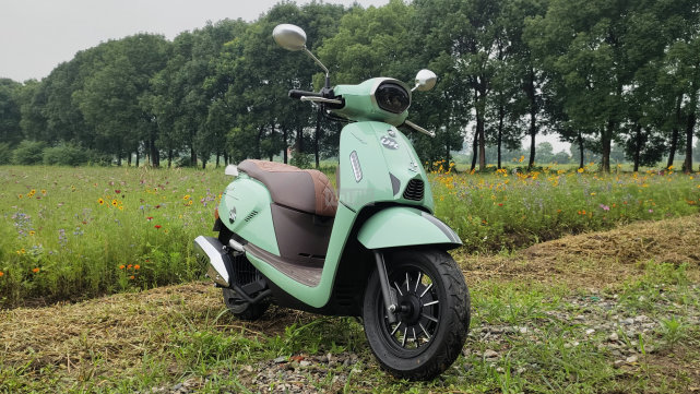 QJMOTOR去年年底開始向踏板摩托車領(lǐng)域踏足,到目前為止的兩款小踏板都是歐式復(fù)古風(fēng)格,今天筆者拿到的這臺(tái)是“壹米”150,這臺(tái)糖果綠色顏色筆者拍完照片之后,問過幾個(gè)異性朋友,她們都非常喜歡。
