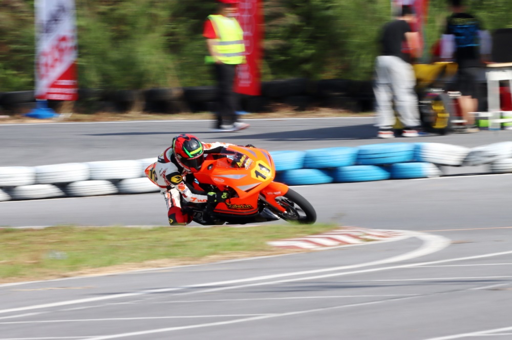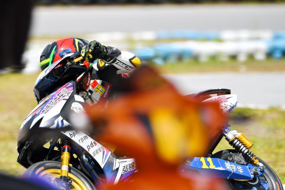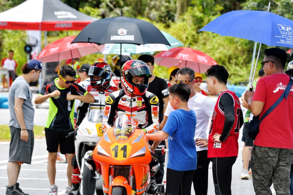 多位車手、兼項(xiàng)參加多個(gè)組別的比賽,其中就包括了以自己的 “ 傳統(tǒng) ” 車號 —— 11 號車,參加 MiniGP A 組、改裝街車公開組(四沖程)和電車公開組,總共三個(gè)組別賽事的梁宇華。