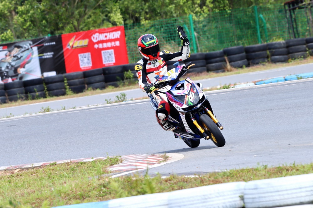 除了 MiniGP A 組的比賽,梁宇華以全勝的姿態(tài)奪得冠軍之外,另外兩個(gè)組別的比賽,他都是奪得了決賽一的第二、決賽二的第一,同時(shí)也是以較好的第二節(jié)比賽成績,而取得了最后的勝利。三個(gè)組別的比賽中,在改裝街車公開組的決賽二,他跑出了最快的 55.386 秒的圈速,這是大河馬賽道、在兩輪賽車領(lǐng)域里的第二快時(shí)間(目前摩托車的最快圈速記錄是 55.274 秒)。