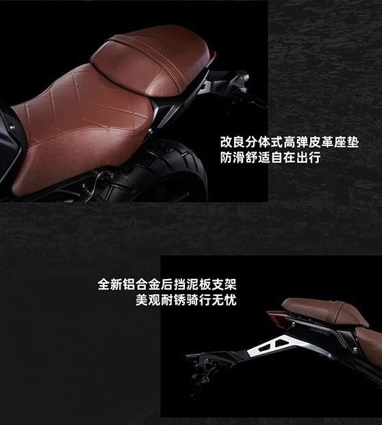 需要注意的是,外觀上的改變不僅是顏色和版畫的變化,坐墊也進(jìn)行了相應(yīng)的升級,棕色皮革坐墊更有復(fù)古韻味而且檔次感更強(qiáng),另外一個需要提到的是,后擋泥板和牌照框從搖臂式回歸到傳統(tǒng)位置,牌照框的支架也升級為全鋁合金的材質(zhì)。