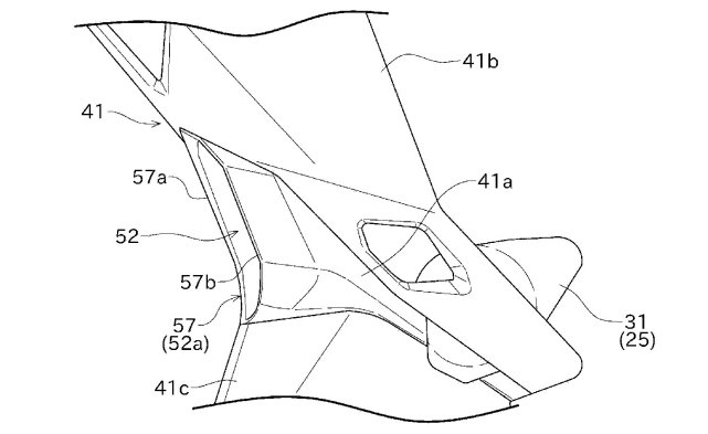 川崎申報(bào)的專利重點(diǎn)是整流罩上的強(qiáng)制進(jìn)氣孔,以此提高氣缸與水箱的冷卻效率。由于發(fā)動(dòng)機(jī)的高轉(zhuǎn)速特性,需要這種額外的空氣冷卻。特別像是ZX-25R具有17,000rpm的高轉(zhuǎn)速,因此散熱管道將有助于提供更多冷卻而無(wú)需擴(kuò)大散熱器。