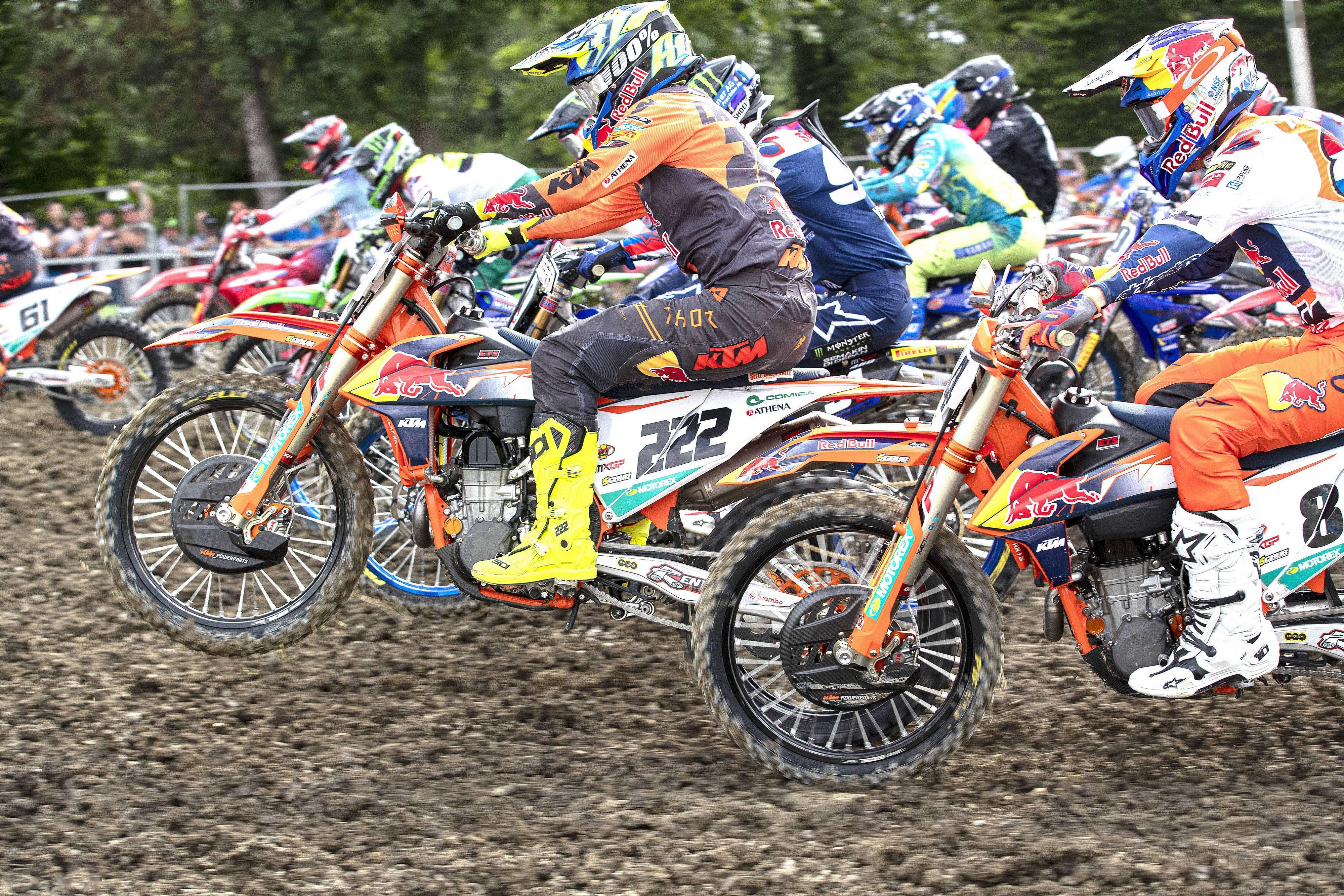 這次的俄羅斯站,進(jìn)行 MXGP 和 MX2 兩個級別的比賽(部分西歐地區(qū)的分站,會有 WMX 世界女子越野錦標(biāo)賽、EMX 歐洲青年錦標(biāo)賽等級別的比賽)。MXGP 級別的賽車規(guī)格是四沖程單氣缸、排氣量 450 cc 以下(此前還接納兩沖程單氣缸、排氣量 250 cc 以下的賽車);MX2 級別的賽車規(guī)格是四沖程單氣缸、排氣量 250 cc 以下(此前還接納兩沖程單氣缸、排氣量 125 cc 以下的賽車)。