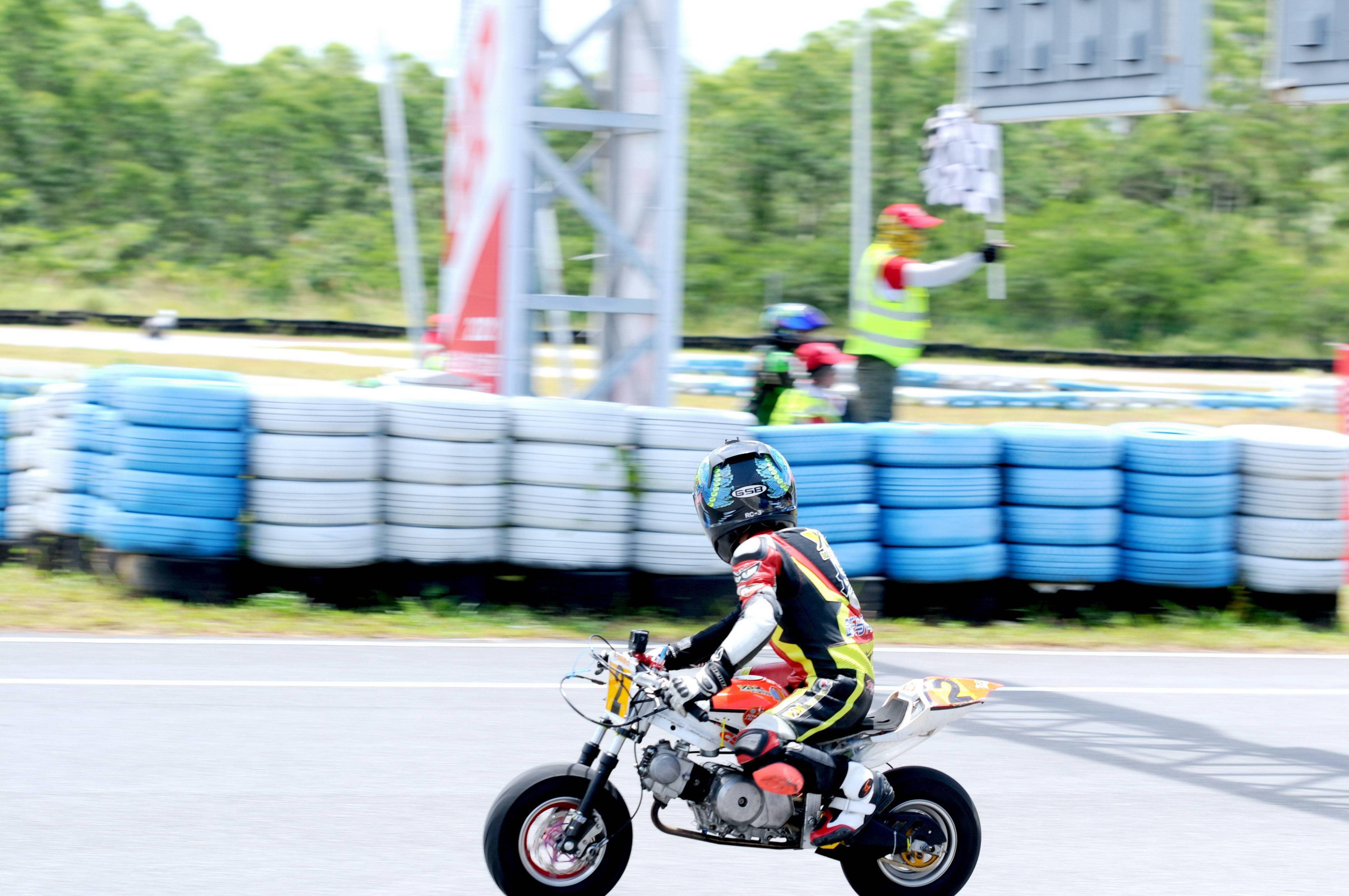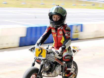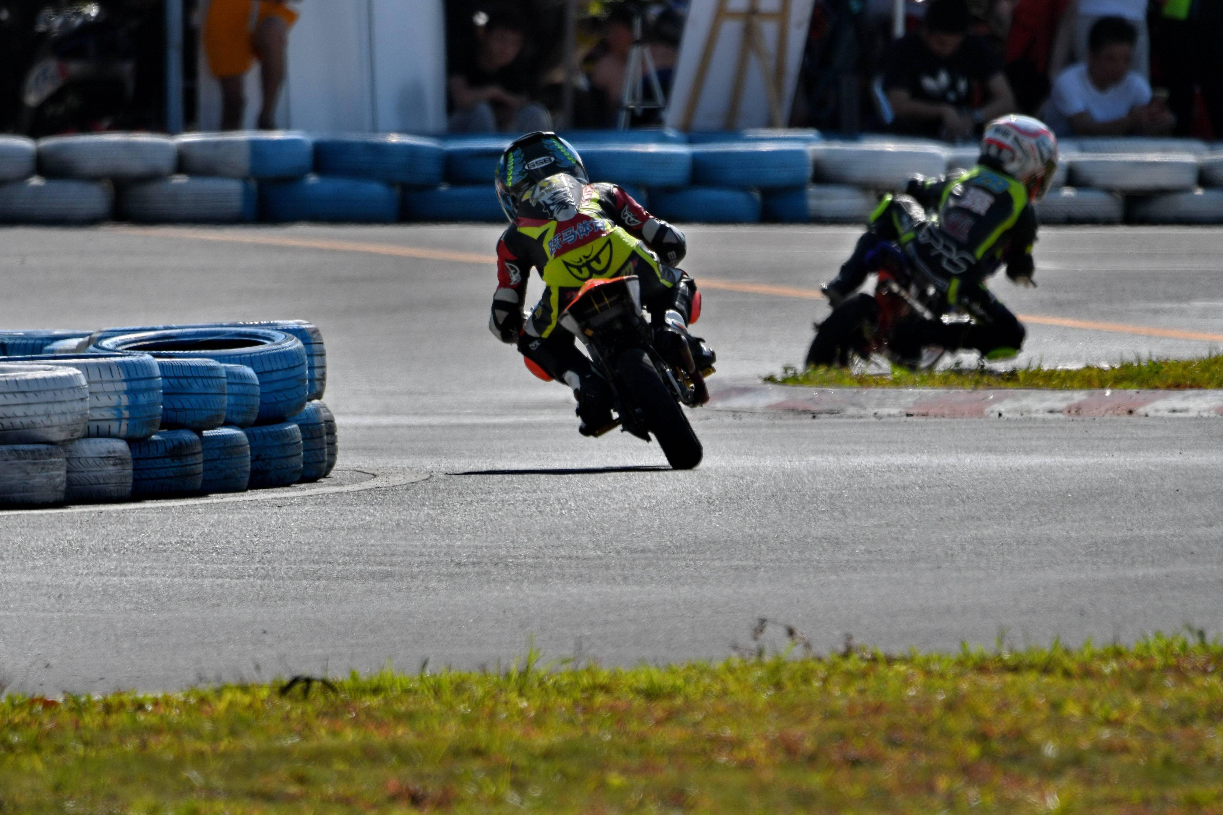 決賽二、更是一場白熱化的競爭,最后沖線時,韓斐然以大約 0.6 秒的優(yōu)勢獲勝,并以兩節(jié)全勝的姿態(tài)、奪得了本站比賽的小童 B 組冠軍。對于一臺車輪直徑限制在 8 英寸以下、發(fā)動機(jī)限制為單氣缸兩氣閥、排氣量在 57 cc 以下的賽車來說,僅僅是大約 0.6 秒的差異,其競爭的激烈程度、可見一斑。
