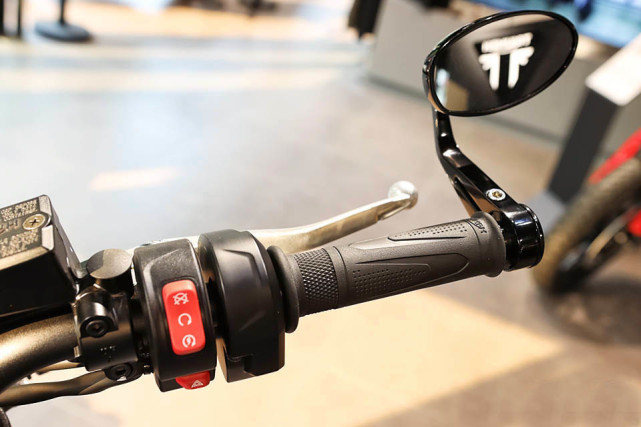 車把按鍵的布局和功能分布并不復(fù)雜,基本上都能明白每個(gè)按鍵的作用,后鏡為凱旋的原廠改裝件,需要自行選裝。
