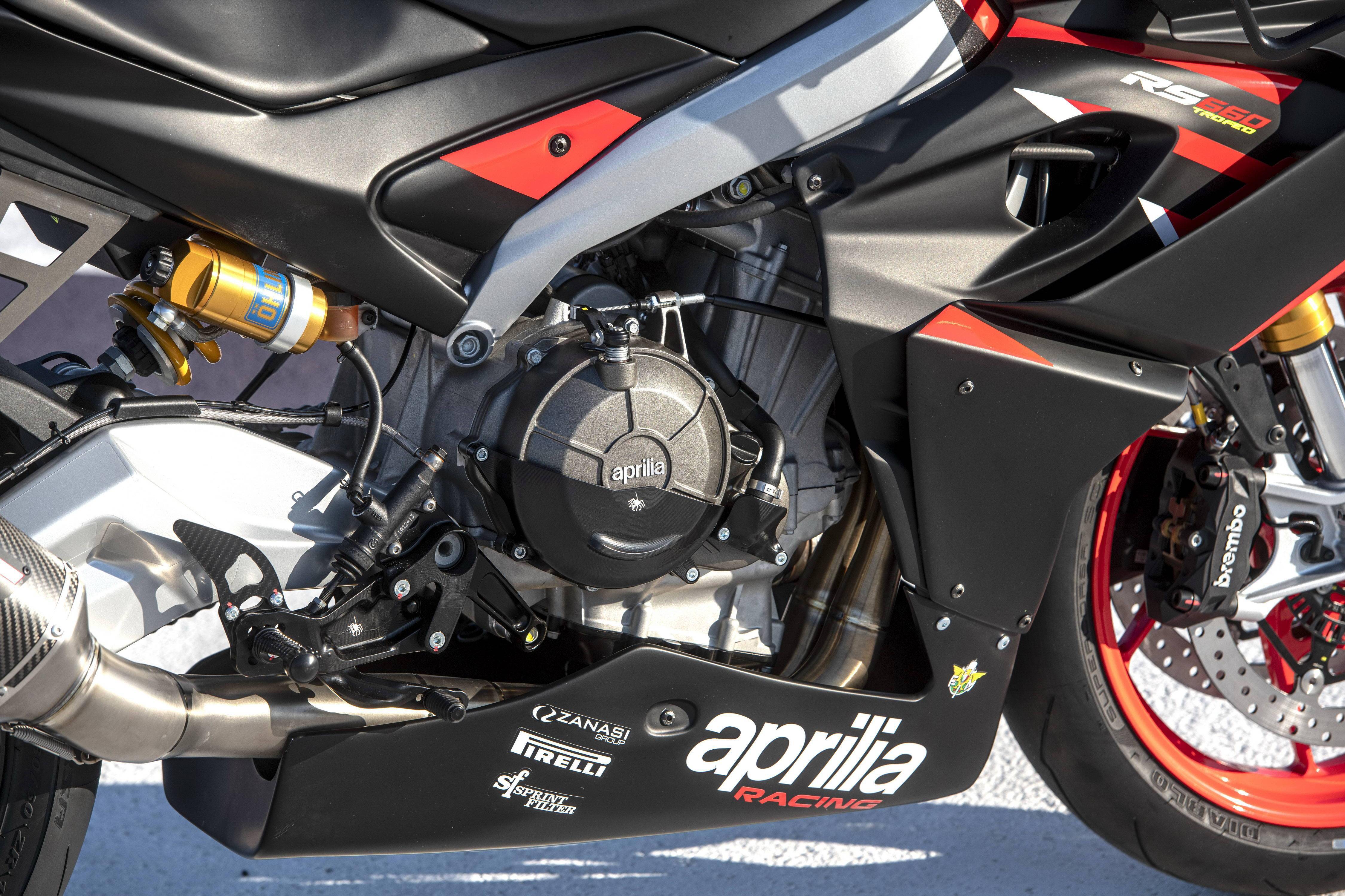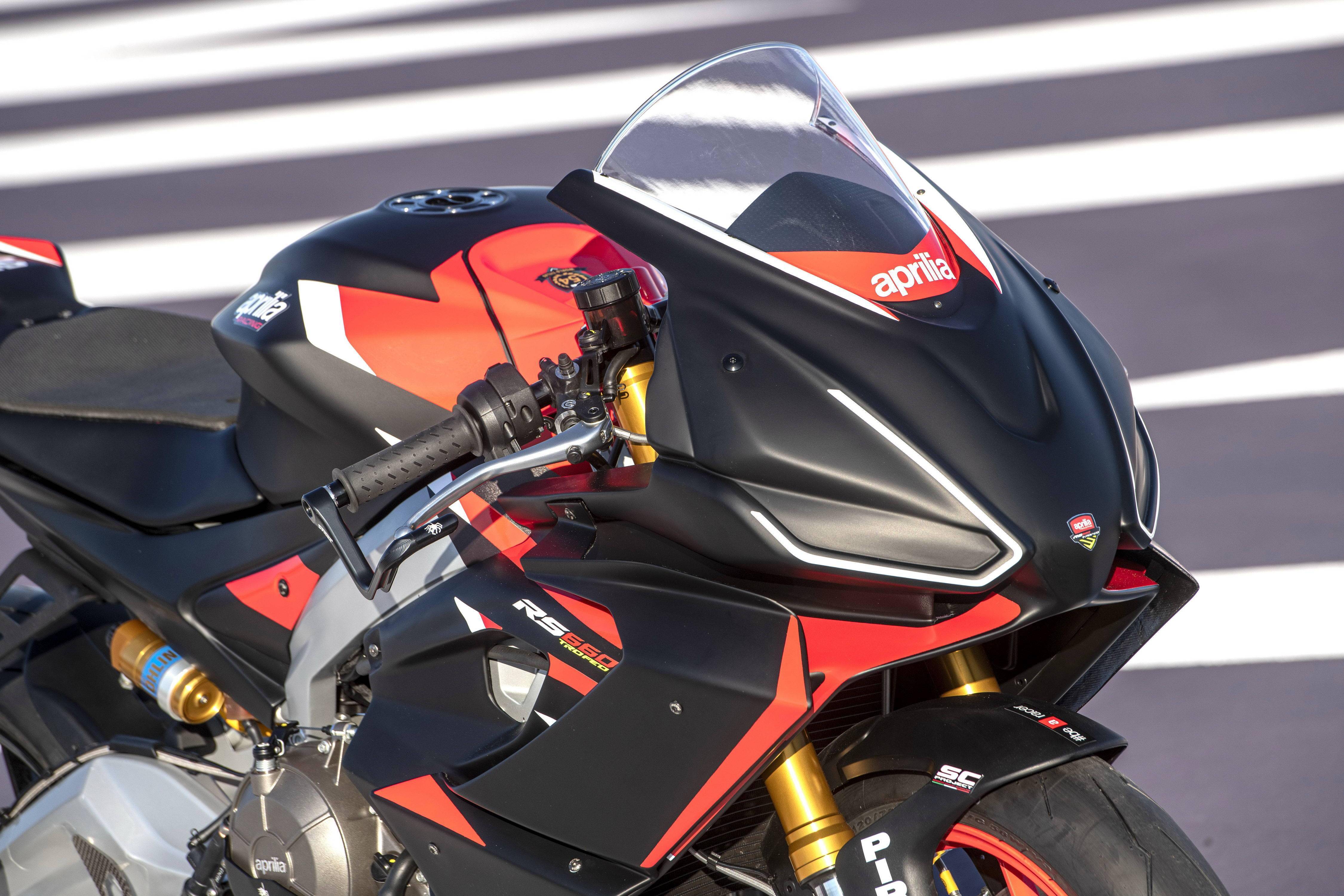 量產(chǎn)標(biāo)準(zhǔn)狀態(tài)下的 RS660 搭載一副水冷四沖程直列兩氣缸的發(fā)動(dòng)機(jī),缸徑、行程為 81 mm x 63.93 mm,壓縮比高達(dá) 13.5:1,排氣量 659 cc,最大動(dòng)力輸出 73.5 kw(約 100 匹)。車體采用一副鋁合金制的雙翼樑式的車架,叉芯口徑為 41 mm 的 KYB 倒立式前叉,全車的干燥重量為 169 公斤(整備重量為 183 公斤)。