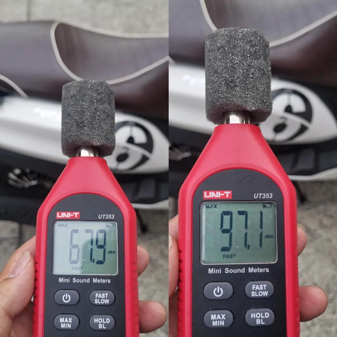 除了動(dòng)力表現(xiàn)不錯(cuò),125ET發(fā)動(dòng)機(jī)的靜音效果也同樣優(yōu)秀,怠速噪音和加油門全程噪音控制都非常棒,我們對(duì)125ET進(jìn)行了噪音測(cè)試,距離車身1米左右的距離,測(cè)得怠速時(shí)噪音為67.9dBA,油門到底時(shí)最大噪音為97.1dBA,這個(gè)成績和合資主流125踏板幾乎不分上下,在市區(qū)騎乘時(shí),這點(diǎn)噪音會(huì)被環(huán)境噪音所覆蓋。