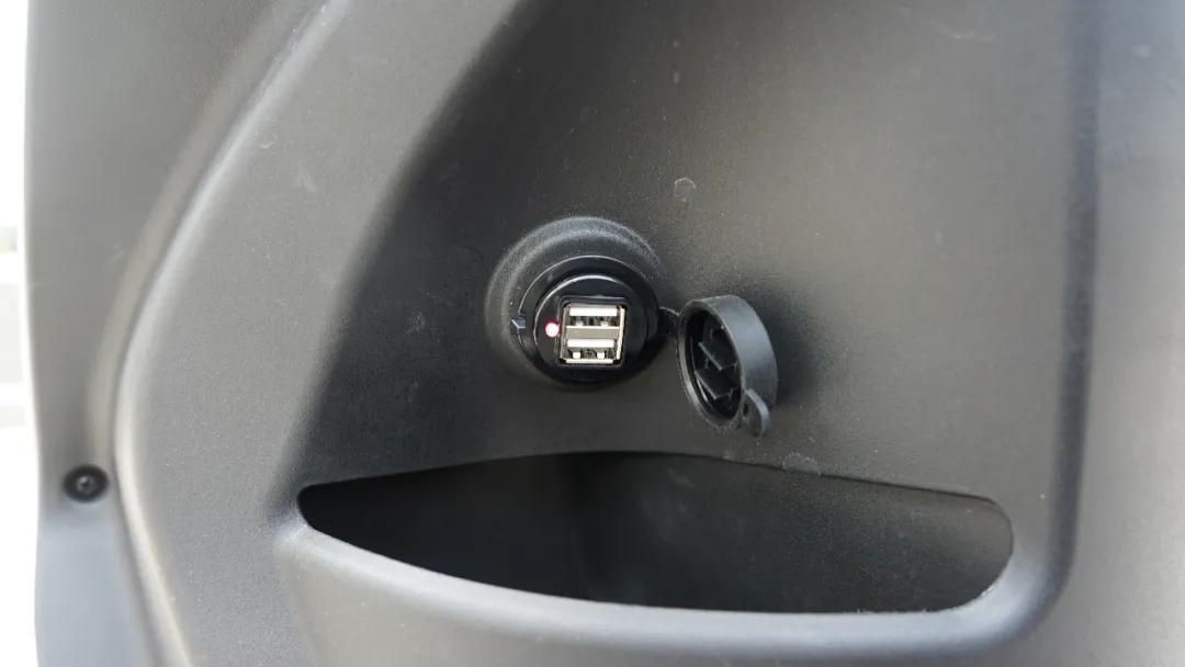 在車輛的前半部分還有兩個(gè)置物格,每邊都能放得下一瓶600ml左右的飲料,也算是實(shí)用性的配置了,而且在左側(cè)的置物格內(nèi)還配備了兩個(gè)標(biāo)準(zhǔn)的USB充電接口,可以同時(shí)為兩部設(shè)備充電,這個(gè)設(shè)計(jì)就比較人性化了。