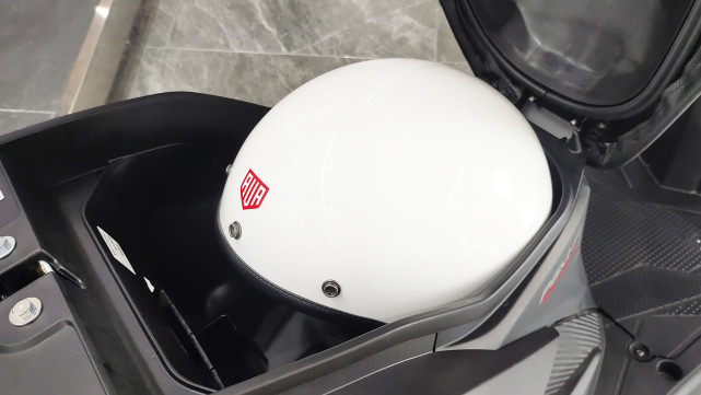 受限于尺寸,所以座桶并不是很大,放全盔是沒指望了,部分大一點的四分之三盔也很懸,AVA的這頂四分之三復古盔放進去剛剛好,還能再放進去一些零碎物品。