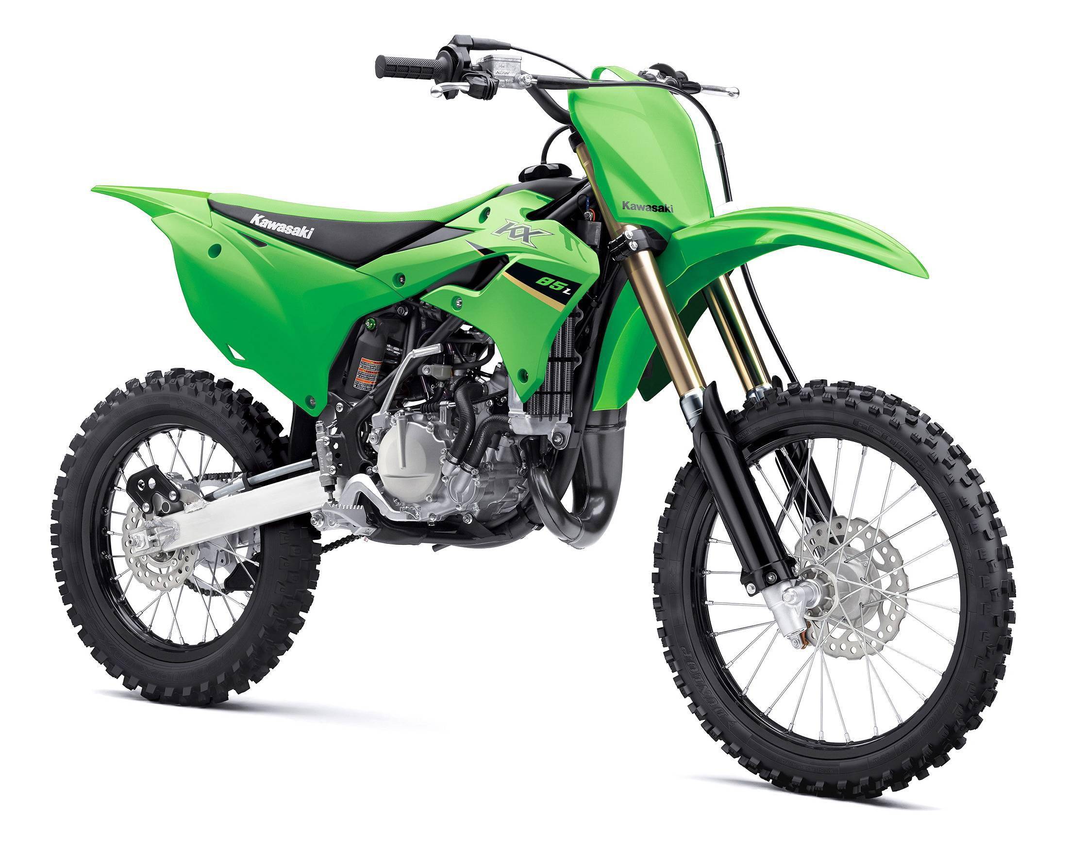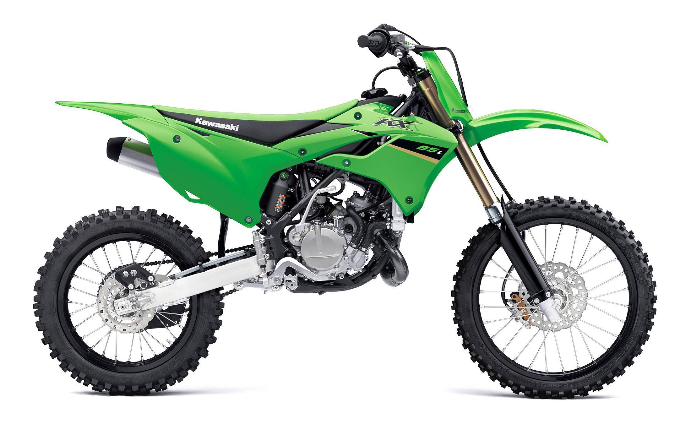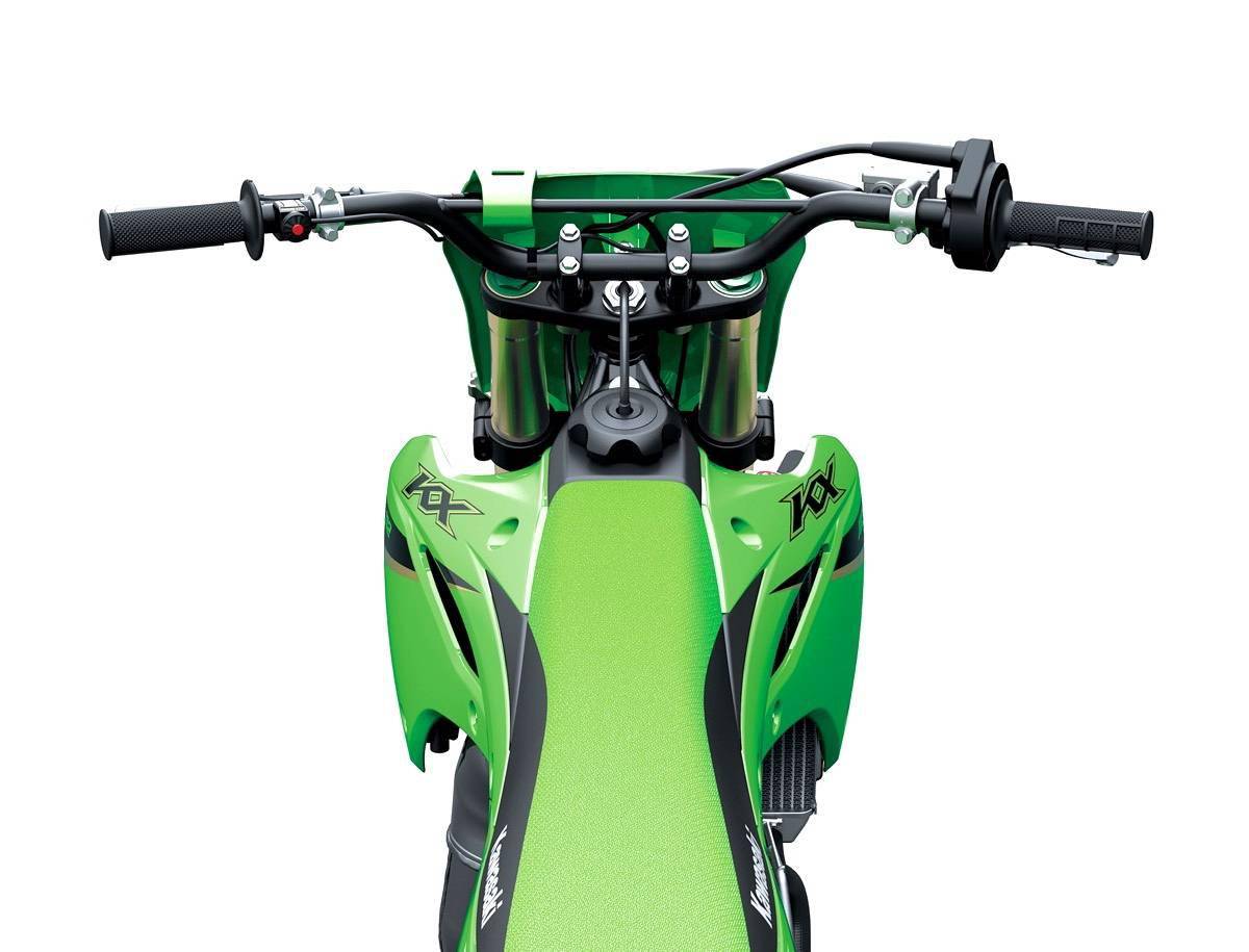 2022 版的 KX85、KX85L 有一個(gè)新的車身圖案,散熱水箱的兩側(cè)護(hù)罩也經(jīng)過(guò)了重新設(shè)計(jì)。標(biāo)準(zhǔn)型的 KX85 采用前 17、后 14 英寸直徑的輪框,L 版則采用前 19、后 16 英寸直徑的輪框。