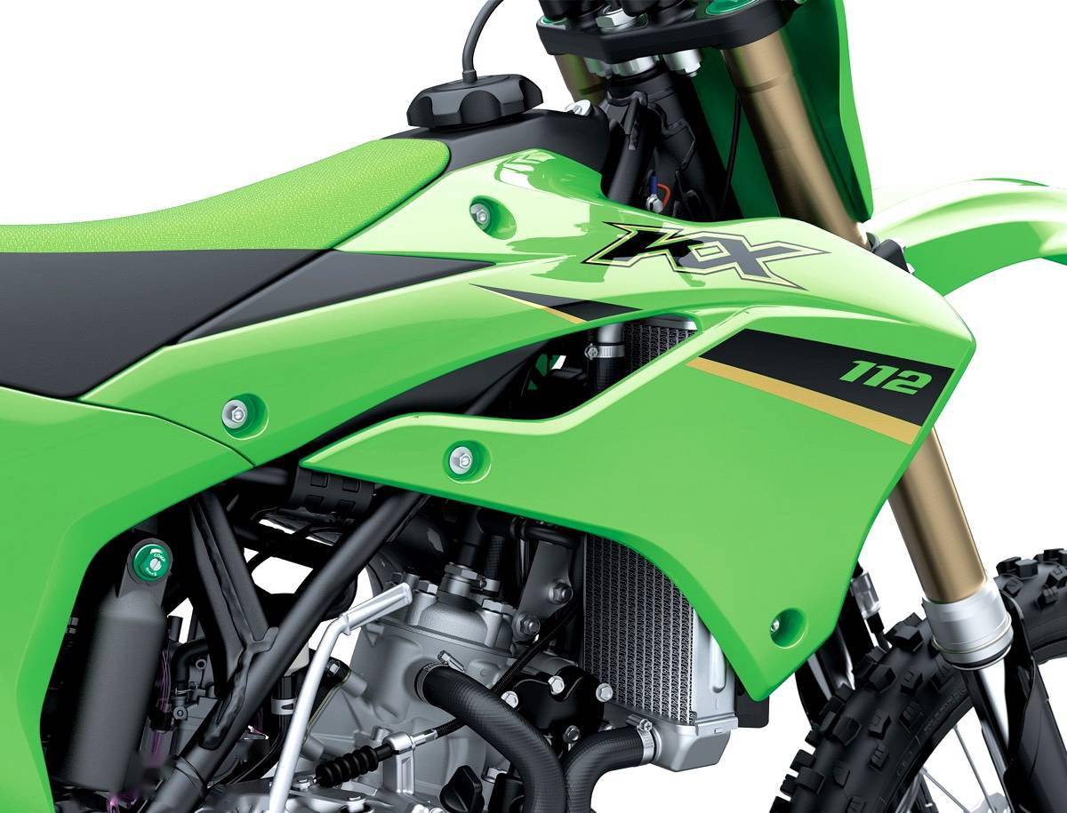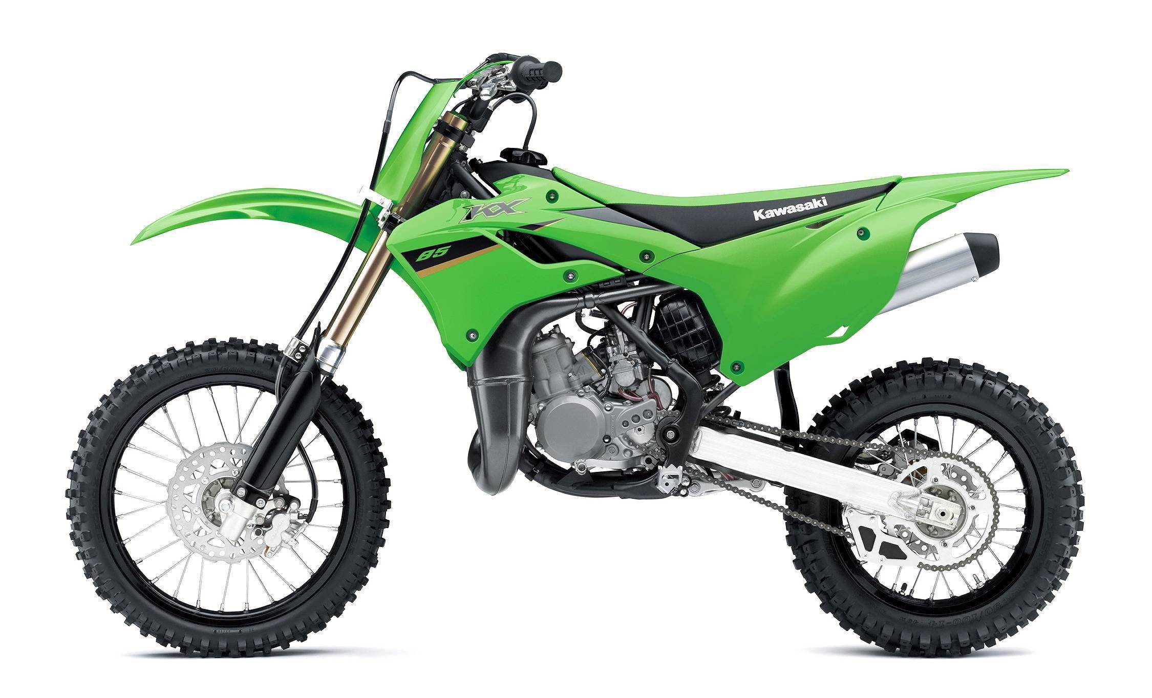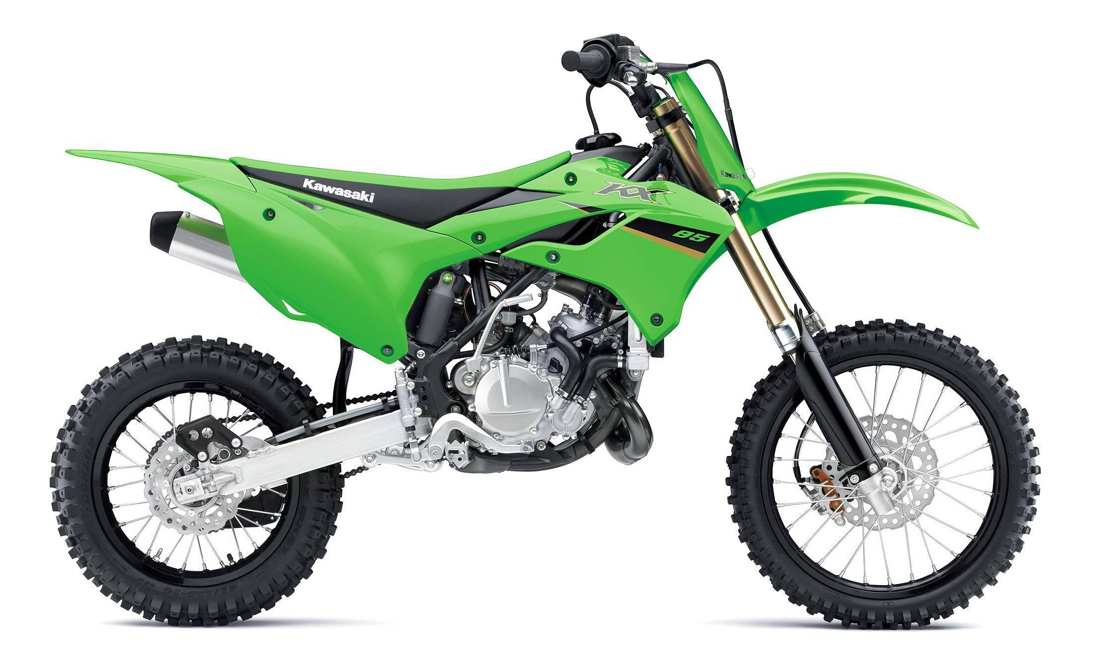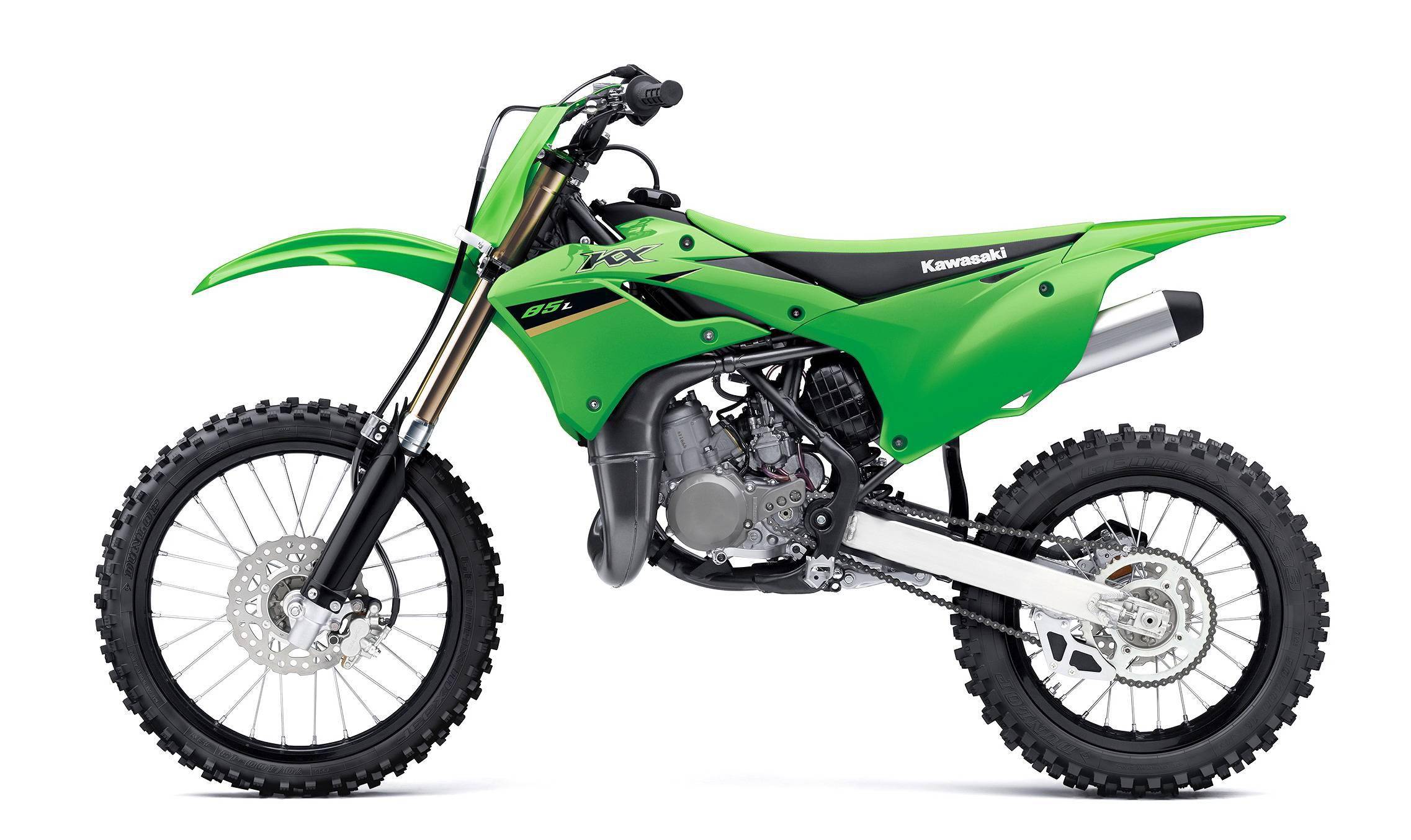 2022 版的 KX85、KX85L 有一個(gè)新的車身圖案,散熱水箱的兩側(cè)護(hù)罩也經(jīng)過(guò)了重新設(shè)計(jì)。標(biāo)準(zhǔn)型的 KX85 采用前 17、后 14 英寸直徑的輪框,L 版則采用前 19、后 16 英寸直徑的輪框。