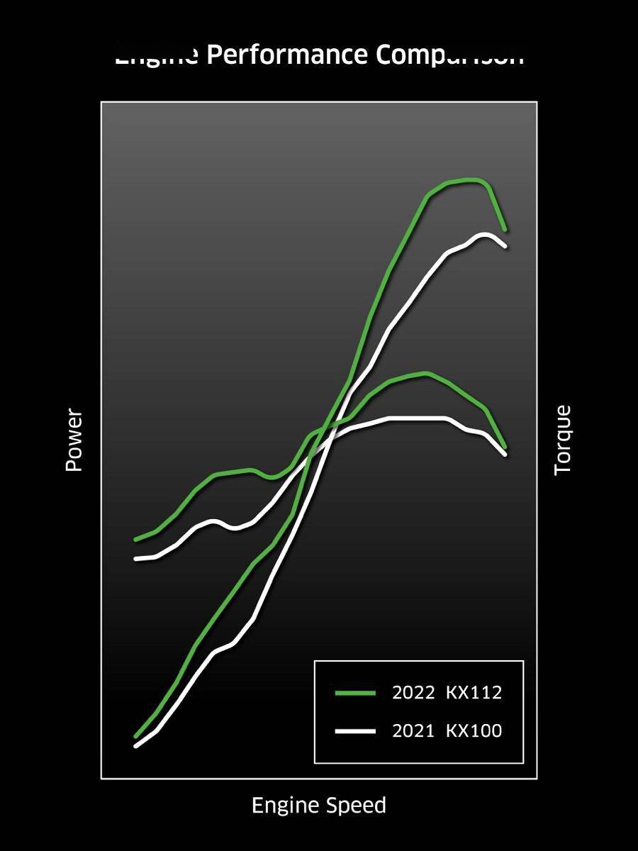 有著較大變化的車型是新型號(hào)的 KX112。該車搭載一副水冷兩沖程單氣缸的發(fā)動(dòng)機(jī),從上一版本的 KX100 升級(jí)而來(lái),缸徑、行程為 52.5 mm x 51.6 mm,排氣量 111 cc。而此前的 KX100 缸徑、行程為 52.5 mm x 45.8 mm,排氣量 99 cc。加長(zhǎng)了的氣缸行程,意味著新車將有更好的低轉(zhuǎn)速表現(xiàn)。而六檔的變速齒輪箱,內(nèi)部齒輪組的變速比也經(jīng)過(guò)了調(diào)整。