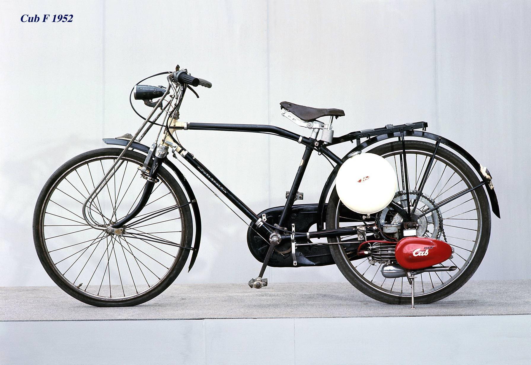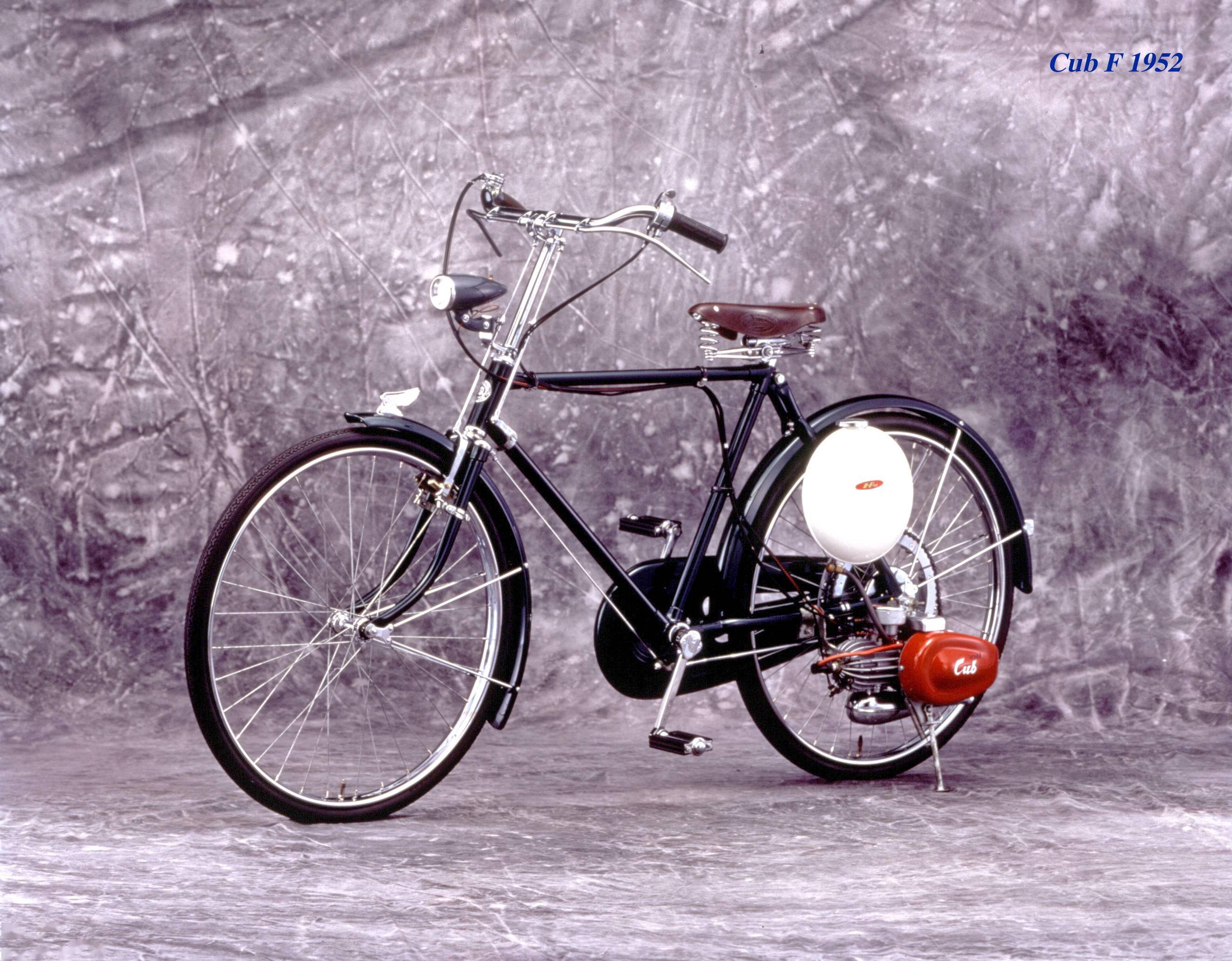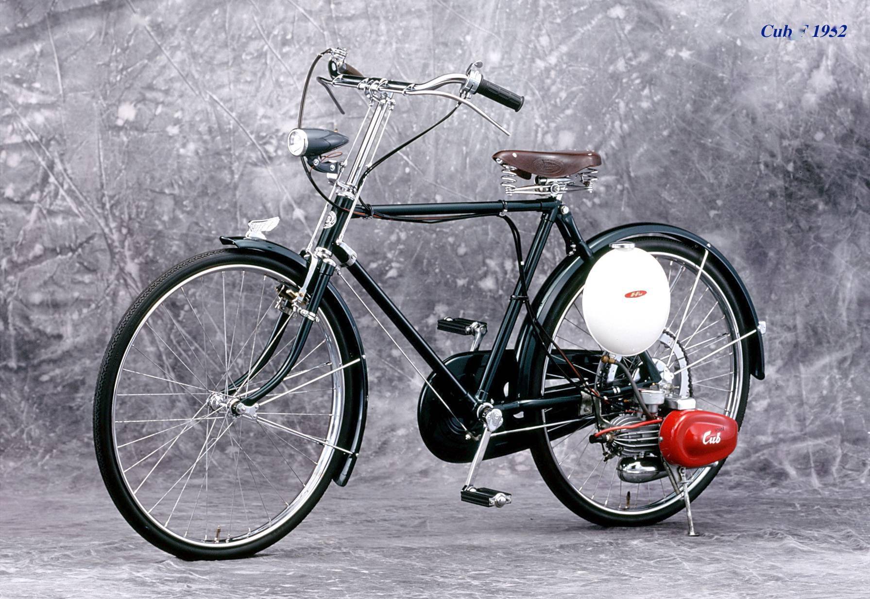 下面的圖片,Super Cub “ 超級幼獸 ” 的前身,是搭載了一副發(fā)動機(jī)的助力車 Cub 系列。