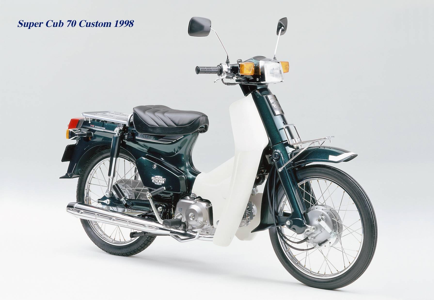 下面的圖片,從上世紀(jì)六十年代開始的 Super Cub “ 超級幼獸 ” 系列車型。