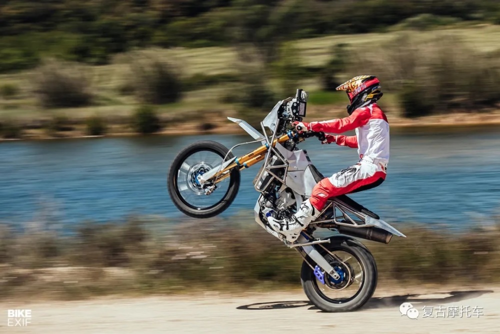 產(chǎn)自2004年的Yamaha WR450F一共經(jīng)過了為期18個月改裝,在漫長的改裝過程中,這部車除了發(fā)動機幾乎全部都是重新定制的。