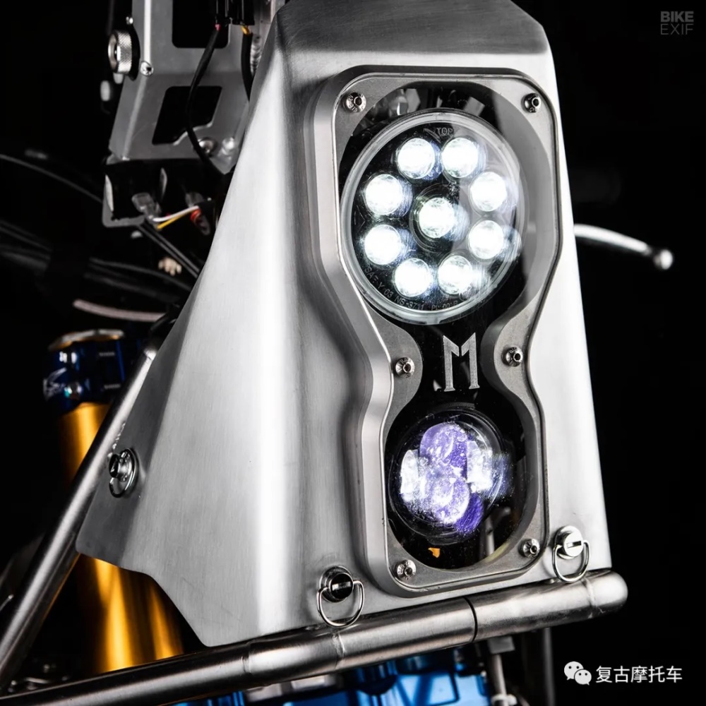 靈一個更明顯的附加功能是該車的導航塔(我們似乎更習慣稱它為“拉力頭“),車把上方有滾動的路書儀以及各種功能性的插槽,除了實用性之外,從視覺上來看也極為舒服。