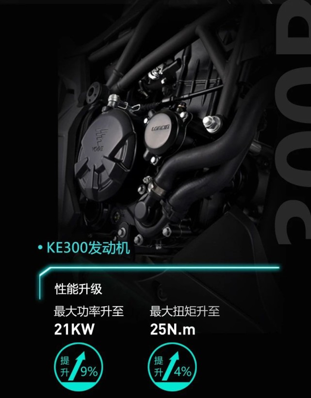 除了此之外,其他部分基本上與老款保持一致,依然搭載KE300單缸水冷發(fā)動機(jī),最大功率21kw/9000rpm,最大扭矩25Nm/7000rpm,僅有164Kg的整備重量讓這臺車操控起來非常的靈活,780mm的座高讓這臺車對身高的要求也不高。