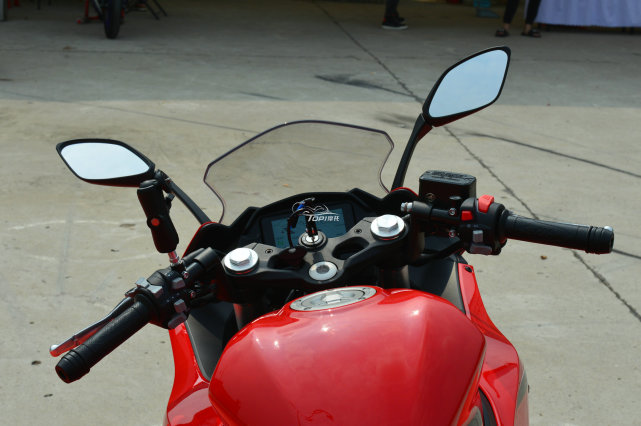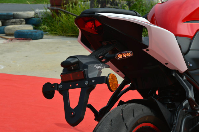 分離式手把位置不算高,但是也不是那種非常低的設(shè)計(jì),這個(gè)高度還是考慮到了日常駕駛的需求。高聳的油箱經(jīng)過收窄夾持感非常不錯(cuò),14L的容量對(duì)這臺(tái)跑車而言足夠使用了。