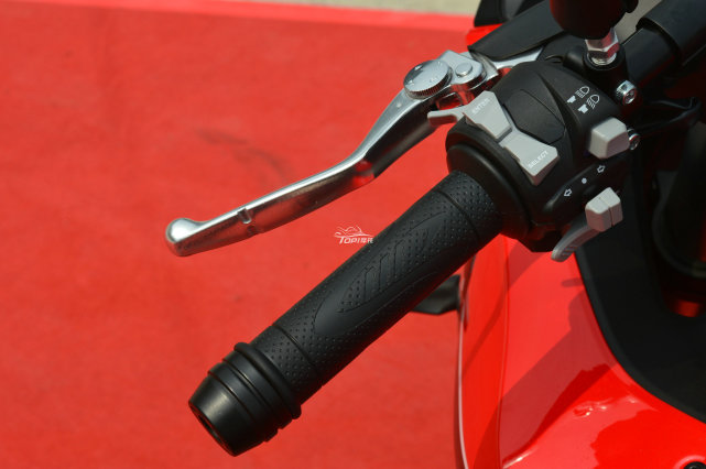手把按鍵依然具備LED背光功能,雙閃的功能按鍵挪到了右手邊,此外,離合、剎車牛角均具備角度調(diào)節(jié)功能。