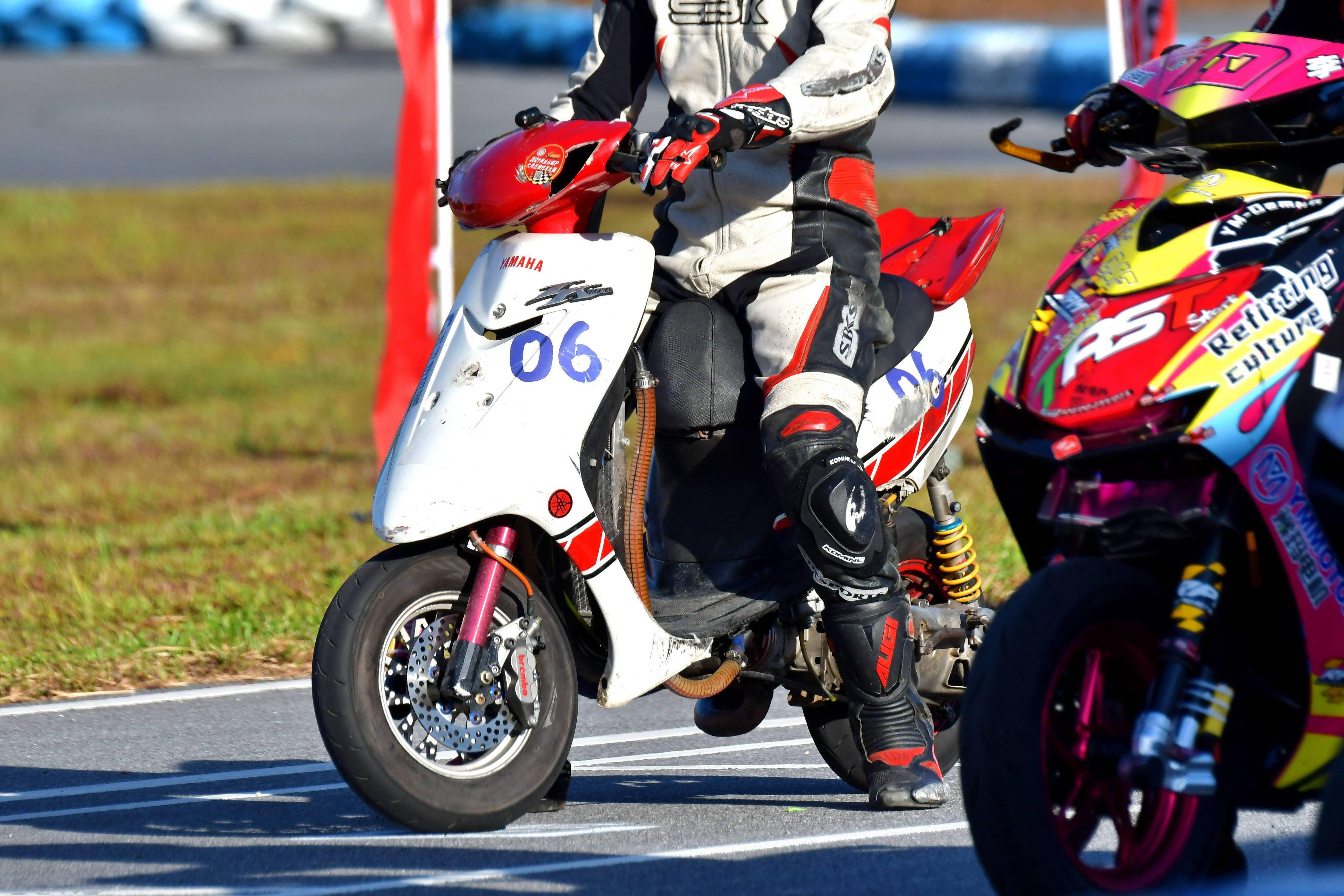 本站的比賽有一個算是近年來難得一見的組別 —— 兩沖程踏板公開組。而在二十多年前,國內(nèi)的踏板賽事、主要是由這些兩沖程賽車組成,老一輩的踏板車手,基本都是從兩沖程走出來的。兩沖程踏板賽車出現(xiàn)在賽場上,讓久違了的混合油燃燒之味道、被重新釋放出來。