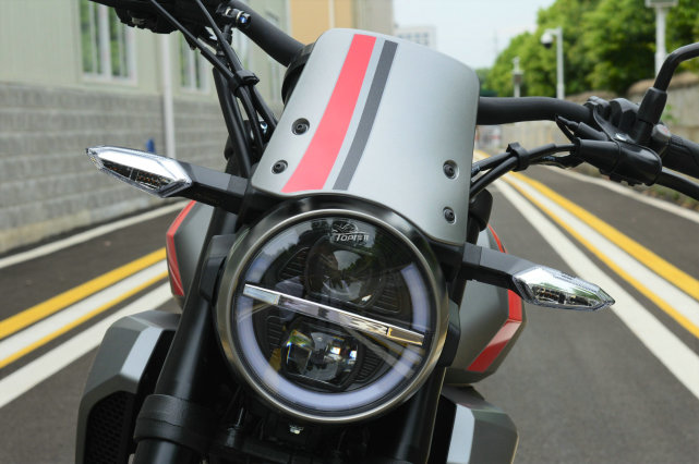 首選是車頭部分增加了小的風擋,雖然并不會起到什么實際作用,但是增添了不少復(fù)古韻味,強化了CBF190TR的復(fù)古印象。