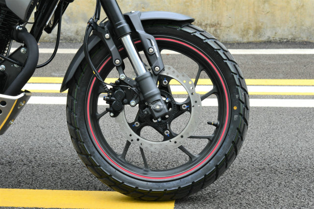 硬件配置方面,依然是倒立式前叉+中置后避震,前單碟剎盤+雙活塞卡鉗,后單碟剎盤+單活塞卡鉗,僅前輪配備ABS防抱死系統(tǒng)。