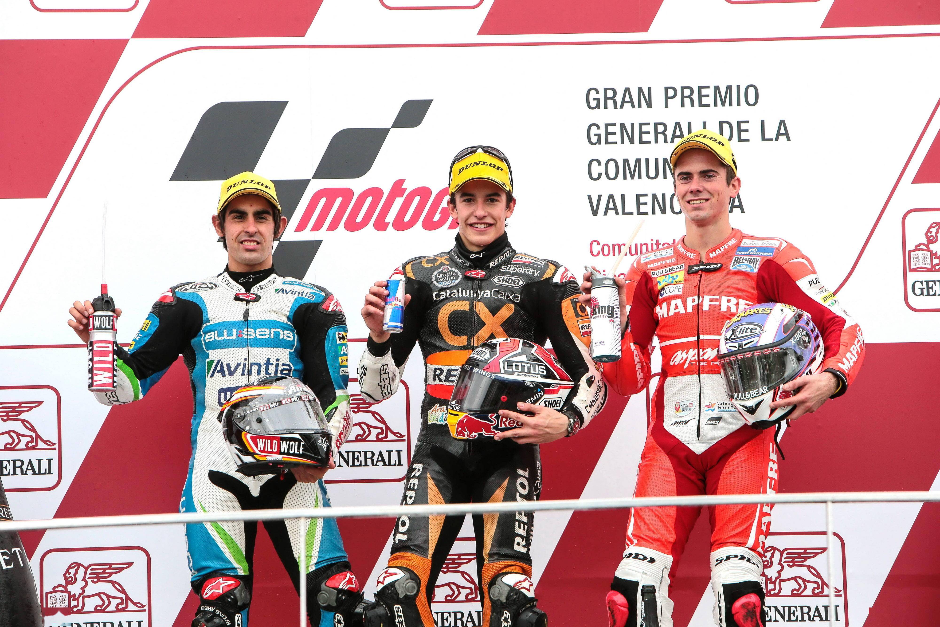 實際,在馬昆斯 2011 年首次升級到 Moto2 的時候,他已經(jīng)為 Suter 拿到了 Moto2 的年度總亞軍 —— 他在全年的十七站比賽里,奪得 7 站比賽的勝利、累計 11 次登上頒獎臺。