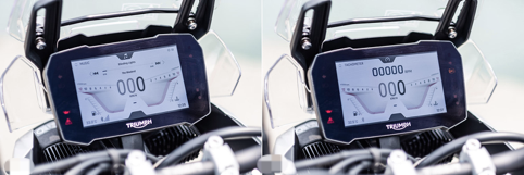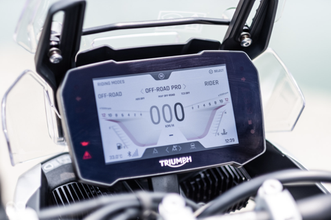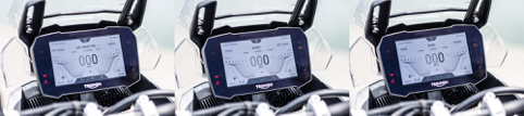 配備方面,凱旋過往不論在電控系統(tǒng)還是儀表功能上都是給好給滿,甚至可以說是走在時代尖端的代表品牌,本次在TIGER 900 RALLY PRO上也同樣搭載上許多的好料,一坐上車馬上印入眼簾的就是那浮夸到極致的7寸TFT液晶儀表,轉動鑰匙打開電門后,屏幕上也隨之出現(xiàn)儀式感滿點的開機動畫。