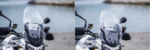 車頭也通過短鳥嘴、長風擋、21寸前輪配上霧燈,TIGER 900 RALLY PRO車頭正面給人滿滿的拉力冒險氣息;風擋也有多段的高度可調,讓騎士能快速根據(jù)使用路況快速調整。