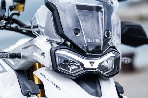 TIGER 900 RALLY PRO在外觀上承襲TIGER家族化的風格設計,但車頭大燈比起前一代的TIGER 800和TIGER 1200在燈具的尺寸上縮小了一些,凱旋通過大燈上下縮窄,燈具內部則加入類似翅膀的定位燈導和左右兩側的遠近燈。