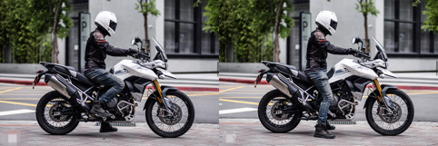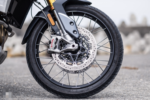 剎車使用前Brembo Stylema對向四活塞卡鉗、后Brembo單活塞卡鉗,搭配上更符合越野路況的前21寸、后17寸鋼絲輪轂無內胎輪圈;座高為850mm~870mm兩段可調、20升油箱,全車干重為201公斤。