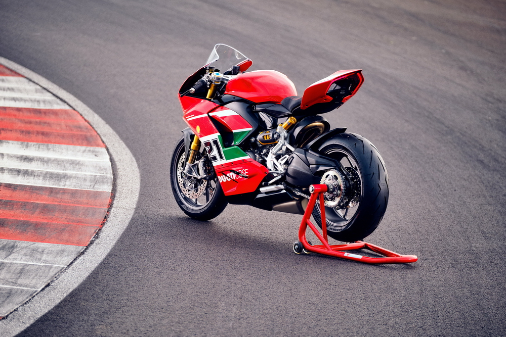 與標(biāo)準(zhǔn)款相比,Panigale V2 拜尼斯首次 WSBK 世界冠軍二十周年紀(jì)念版、采用了一個靈感來自于當(dāng)年 996 R 的外觀圖案,單座位的設(shè)計,采用了更高級別的懸掛系統(tǒng),換裝了鋰電池等。