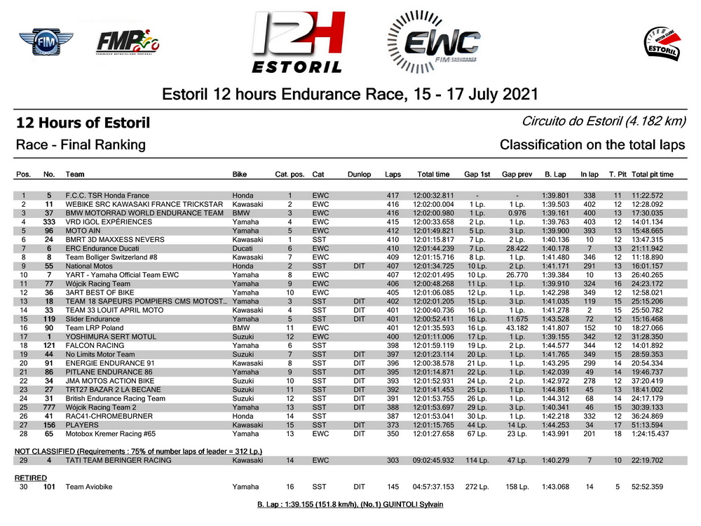 FIM EWC(Endurance World Championship)世界耐力錦標(biāo)賽、2021 賽季第二站的比賽 —— 埃斯多利(Estoril)十二小時耐力賽,七月 17 日在葡萄牙埃斯多利賽車場舉行。