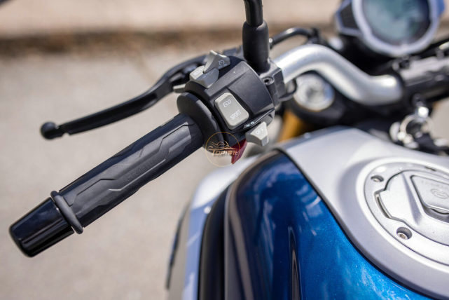 全新設(shè)計(jì)的手把按鍵質(zhì)感出色,有點(diǎn)類似歐洲車的風(fēng)格,左側(cè)手把,兩種駕駛模式選擇鍵和定速巡航功能按鍵歷歷在目,還標(biāo)配了滑動(dòng)離合器。