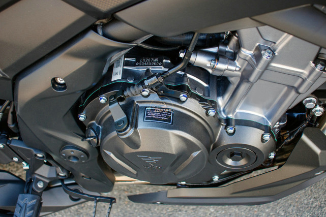 這臺發(fā)動機運行品質(zhì)在國產(chǎn)同級別車型當(dāng)中無出其右,震動的抑制也相當(dāng)?shù)轿?,中低轉(zhuǎn)速有力,高轉(zhuǎn)爆發(fā)力強,零百加速只要5秒出頭,極速水平超過160km/h,對于一臺500cc級別的車型來說相當(dāng)不錯了。