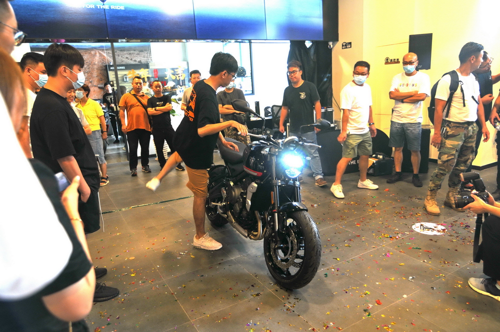 數(shù)十位兩輪愛(ài)好者和準(zhǔn)車(chē)主出席了本次的新車(chē)品鑒暨交付活動(dòng)。從現(xiàn)場(chǎng)多臺(tái) Trident 660 “ 三叉戟 ” 被里外圍觀、反復(fù)試坐的熱鬧狀況看,有著一個(gè) “ 嬌小 ” 外部尺寸的這臺(tái)凱旋全新中型車(chē),頗受大家的關(guān)注。