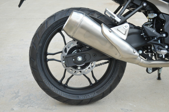 后剎車采用單盤+單活塞的規(guī)格,前后均有配備ABS防抱死系統(tǒng),鋼制后搖臂經(jīng)過加粗設(shè)計(jì),沒有了普通方管后搖臂的廉價(jià)感。