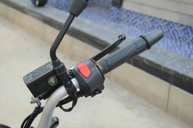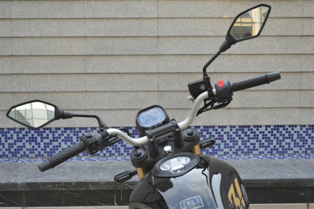 左右手把按鍵較為平常,通用的布局易于上手,需要注意的是右手邊沒有大燈開關(guān),因?yàn)?00AC采用常亮的形式,只能進(jìn)行遠(yuǎn)近光切換。