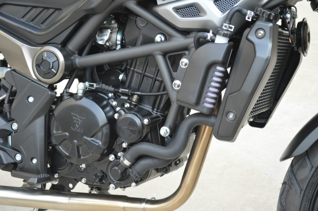 動(dòng)力方面還是,292排量的單缸水冷發(fā)動(dòng)機(jī),最大功率21Kw/9000rpm,最大扭矩25Nm/7000rpm,這臺(tái)發(fā)動(dòng)機(jī)的輸出相當(dāng)均衡,這臺(tái)發(fā)動(dòng)機(jī)最開始用在無極300R上非常成熟,中低轉(zhuǎn)速的震動(dòng)抑制還不錯(cuò)。