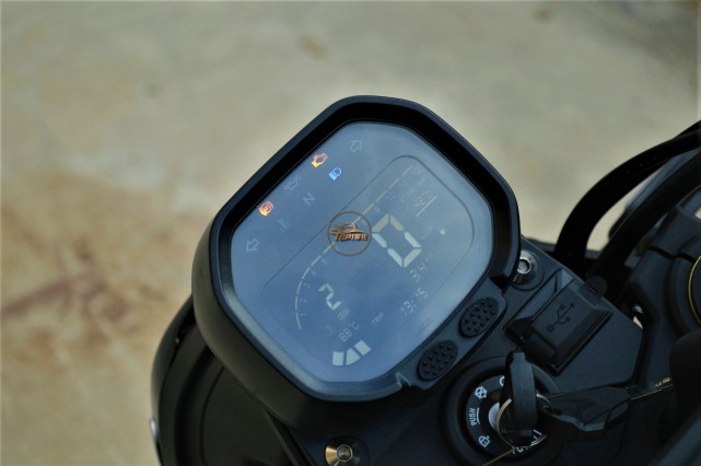 單色LED儀表在這個(gè)級(jí)別是非常常見的標(biāo)準(zhǔn),面積雖小但是顯示的數(shù)據(jù)很全面,新手比較關(guān)注的擋位和速度放在最顯眼的位置,還有配備USB充電口。