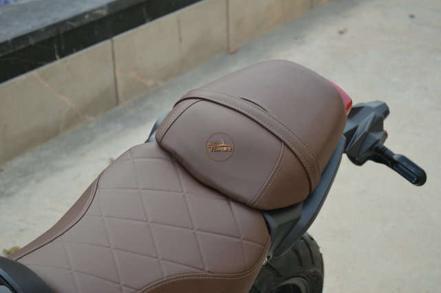 坐墊的造型并沒有改變,但是坐墊的面料由黑色變成更有復(fù)古味道的深咖色,而且加入了菱形的條紋,檔次感略有提升。