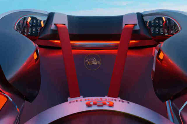 機(jī)艙內(nèi)部采用汽車風(fēng)格的內(nèi)飾,配有氛圍燈和安全帶。此外,內(nèi)飾的每一側(cè)都有面板顯示騎行的遙測和重要信息,如速度、電池百分比、GPS、藍(lán)牙和互聯(lián)網(wǎng)連接。