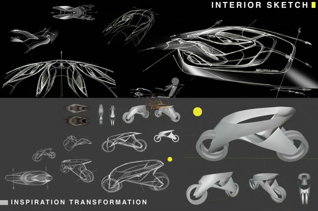 設(shè)計師表示,設(shè)計這輛車時圍繞著四個主題,快速、狂暴、都市以及安全,從近幾年的摩托車發(fā)展看來,未來摩托車的安全將是重點,在保有汽車包覆式的安全狀況下變成兩輪車還能夠節(jié)省空間,城市內(nèi)的通勤也可以更為快速,但這些在現(xiàn)在都還只是概念而已。